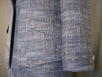 Está compuesto por CHAQUETA ("B") con canesú en el delantero y espalda y cuerpo de corte recto con pequeños frunces en el pecho y centro de la espalda. Tiene mangas cortas y cierre delantero con ojales y botones. El tejido utilizado es lino 100% de color "arena". El patrón está predestinado para la utilización de una tela con bordado "ajour" o bordado "inglés", por lo que se recomienda en las instrucciones el uso de un forro de algodón o batista que sirve asimismo para pulir los bajos de la chaqueta y de las mangas, que están terminados con un pespunte al canto. Aún tratándose de un tejido de lino, he seguido las instrucciones y he cosido la chaqueta tal como se indica en las mismas, forrando la prenda con una popelina de algodón del mismo tono que la tela de lino.