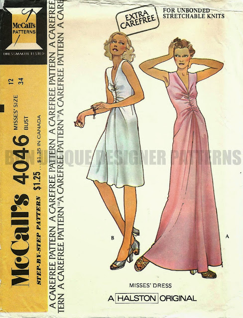 1976. HALSTON "Sarong" dress and stole, gold hammered silk satin. Image via PUBLIC DOMAIN.